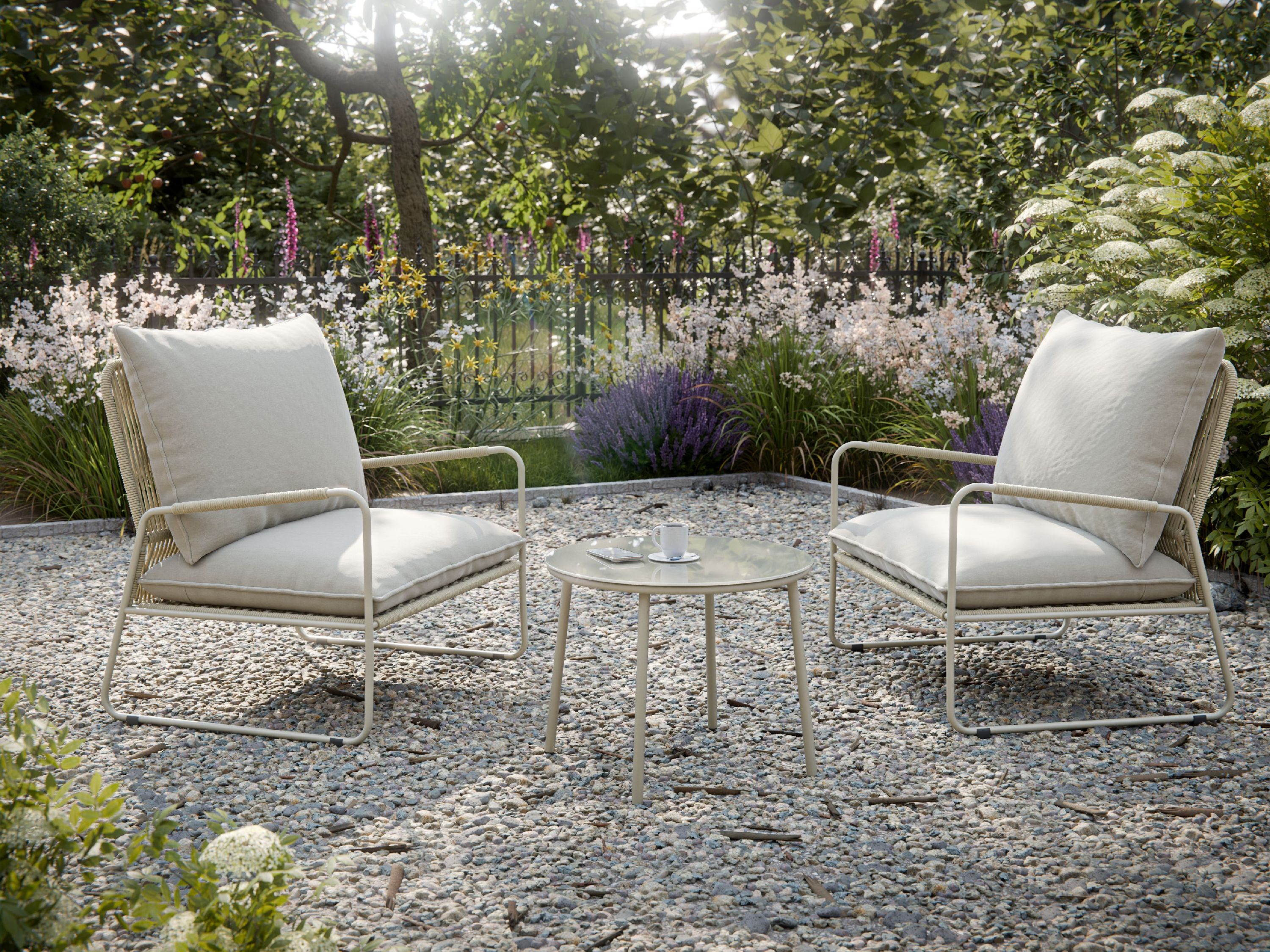 OUTDOOR · Sitz- und Rückenkissen: Polyester-Seilgeflecht beige, Höhe 12 cm · Gestell: Stahl mit... mehr
