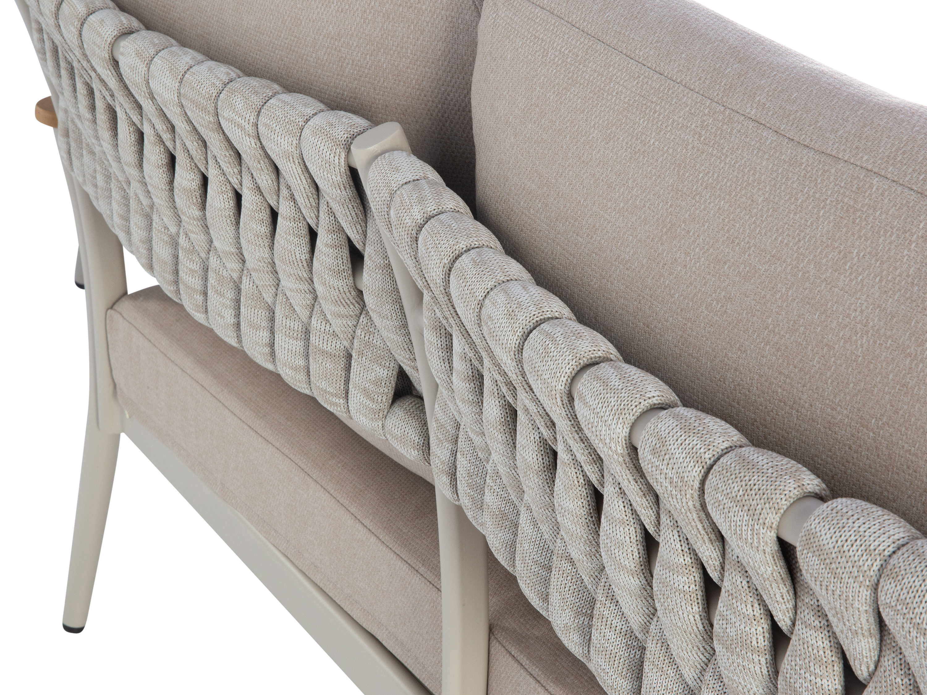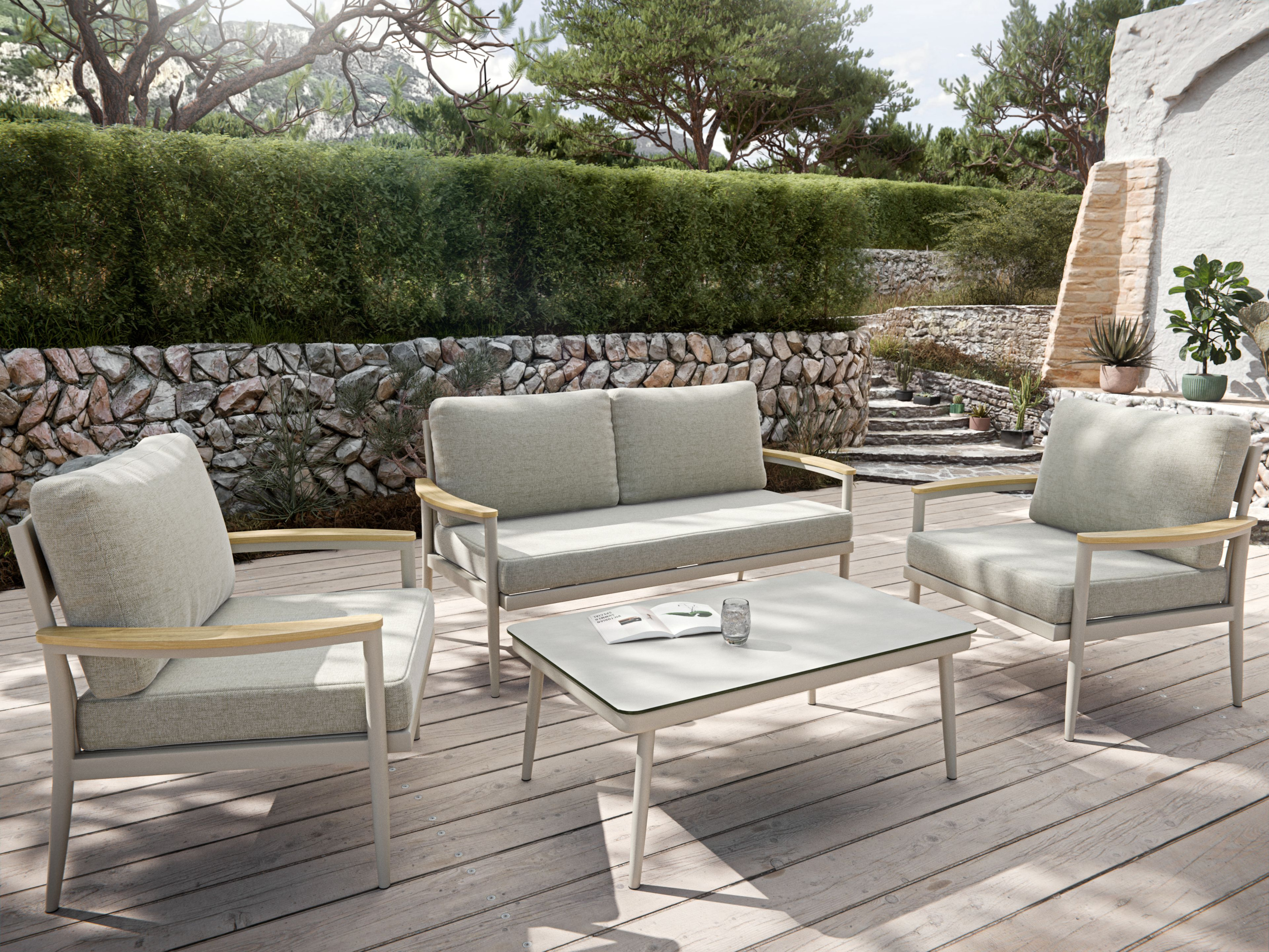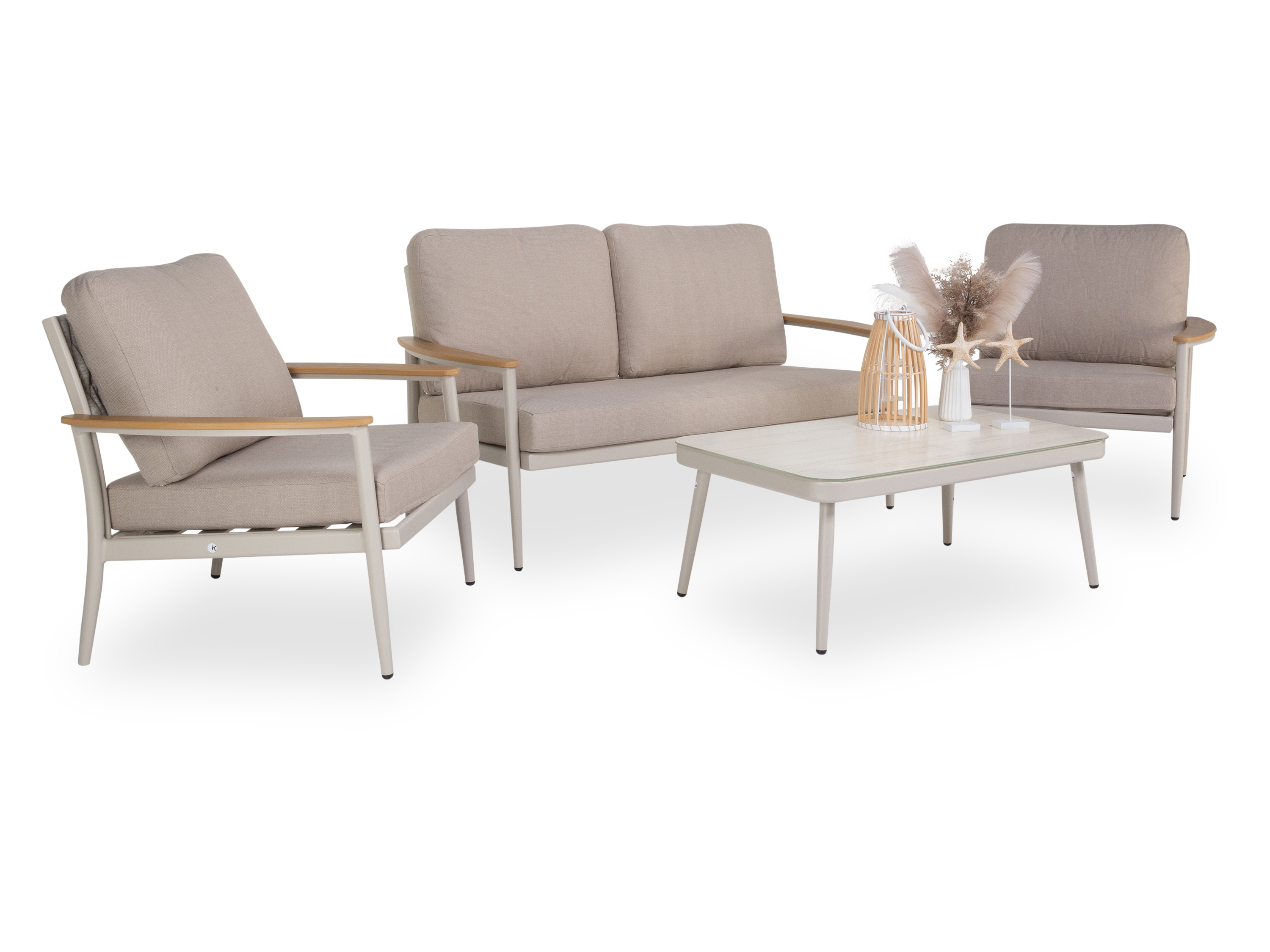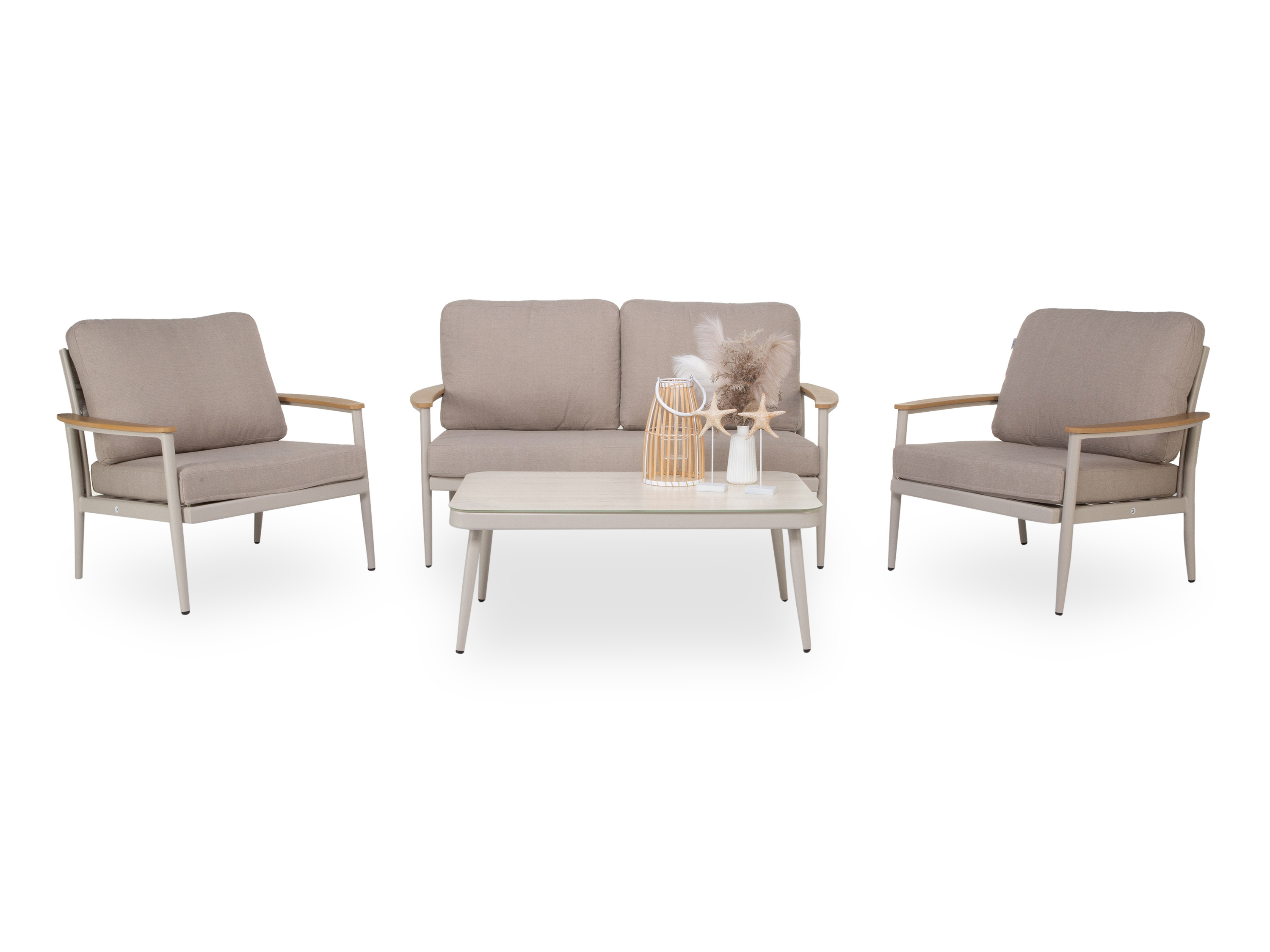 · Farbe: beige · Gestell: Aluminium · Armlehnen aus teakfarbenes Kunststoffholz · Set... mehr