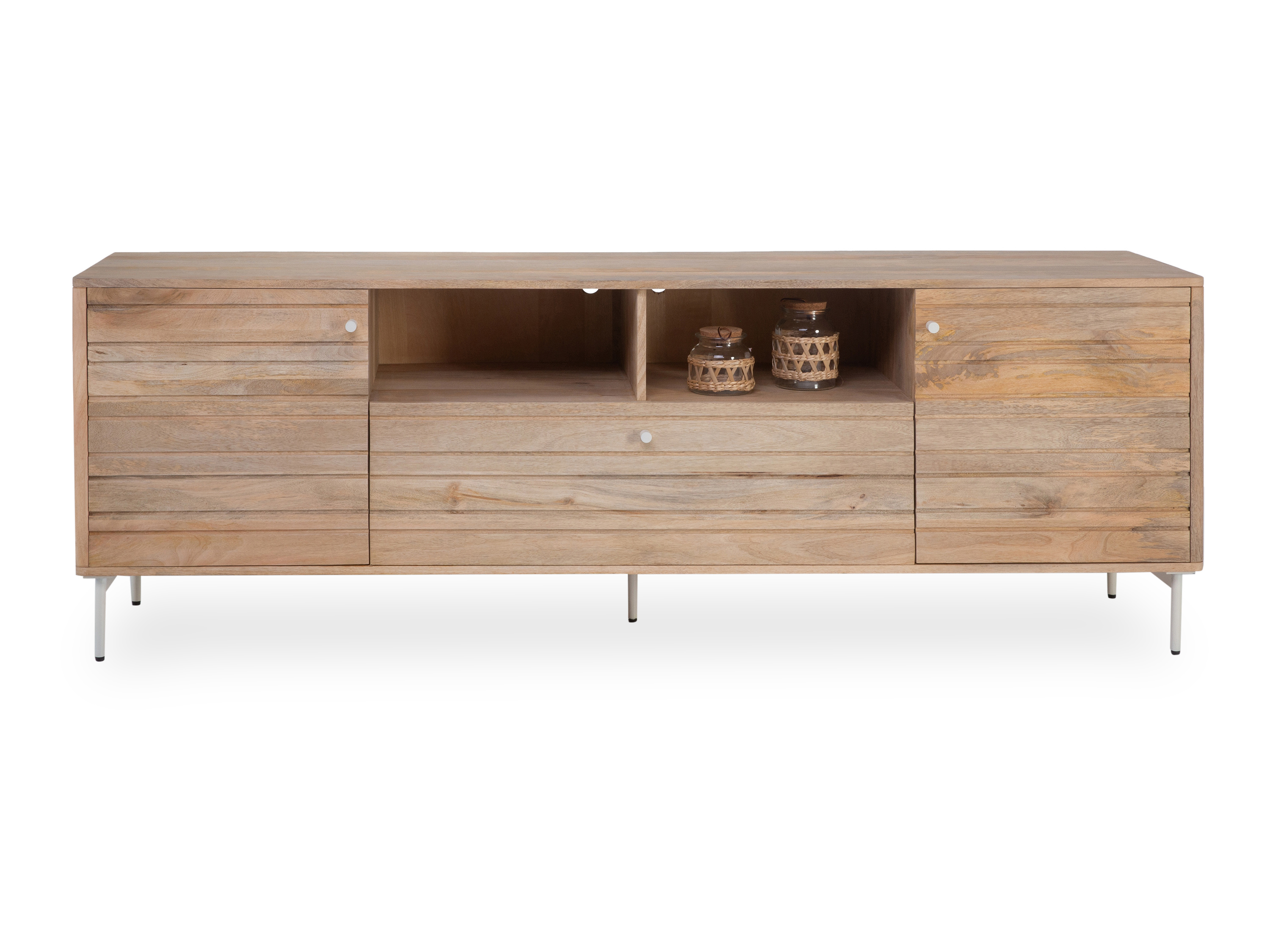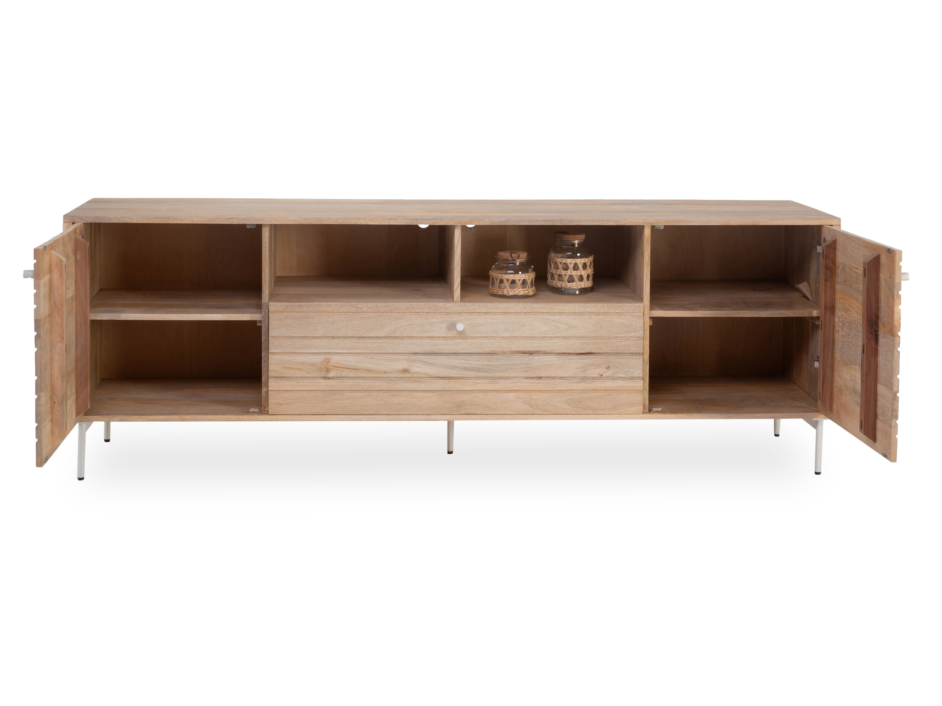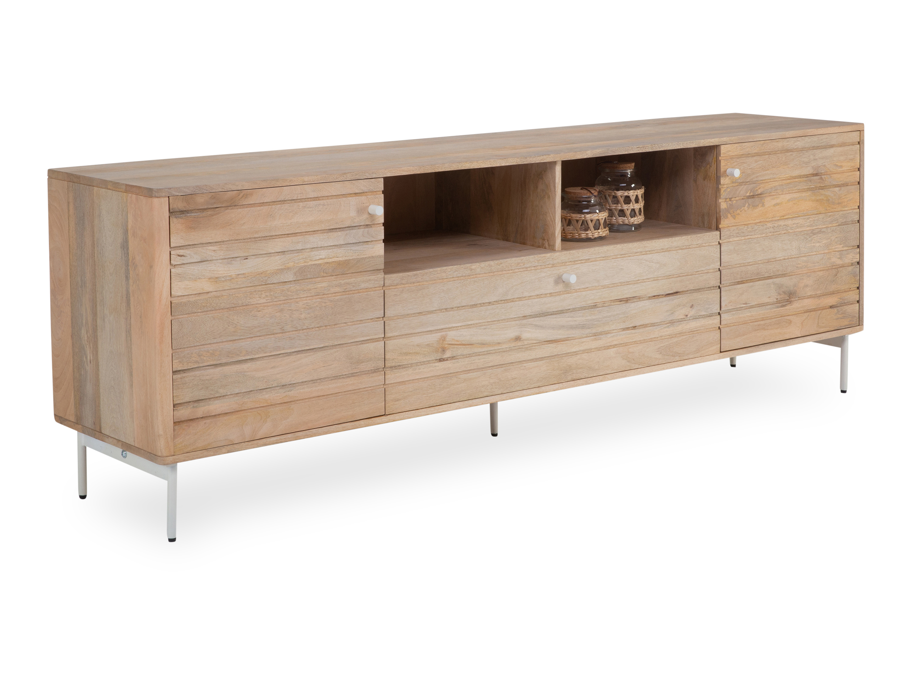 Dieses Lowboard lässt sich in Ihre Wohnung optimal integrieren. Die Kommode aus Mangoholz vervollständigt Ihr persönliches Einrichtungskonzept durch das moderne Design. Sie hat eine Breite von 197 cm, eine Höhe von 66 cm sowie ein Tiefenmaß von insgesamt 45 cm. Sie werden dieses Möbel lieben.