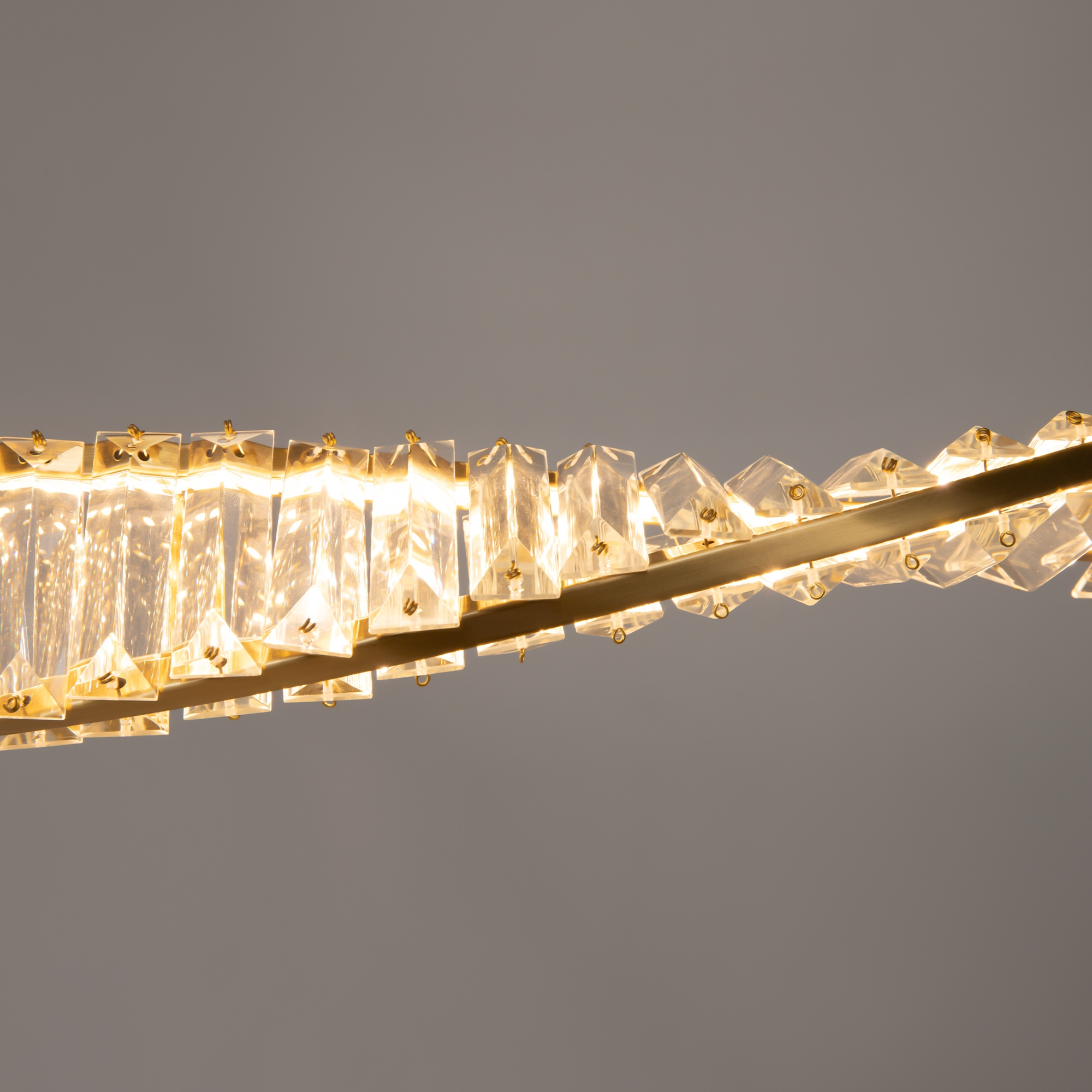 · Metallbeschläge in Gold. Asymmetrischer Kristalldekor. Trendige Kreisform. LED-Lichtquelle mit einer Farbtemperatur von 4000K. Hoher Farbwiedergabeindex von 90Ra.