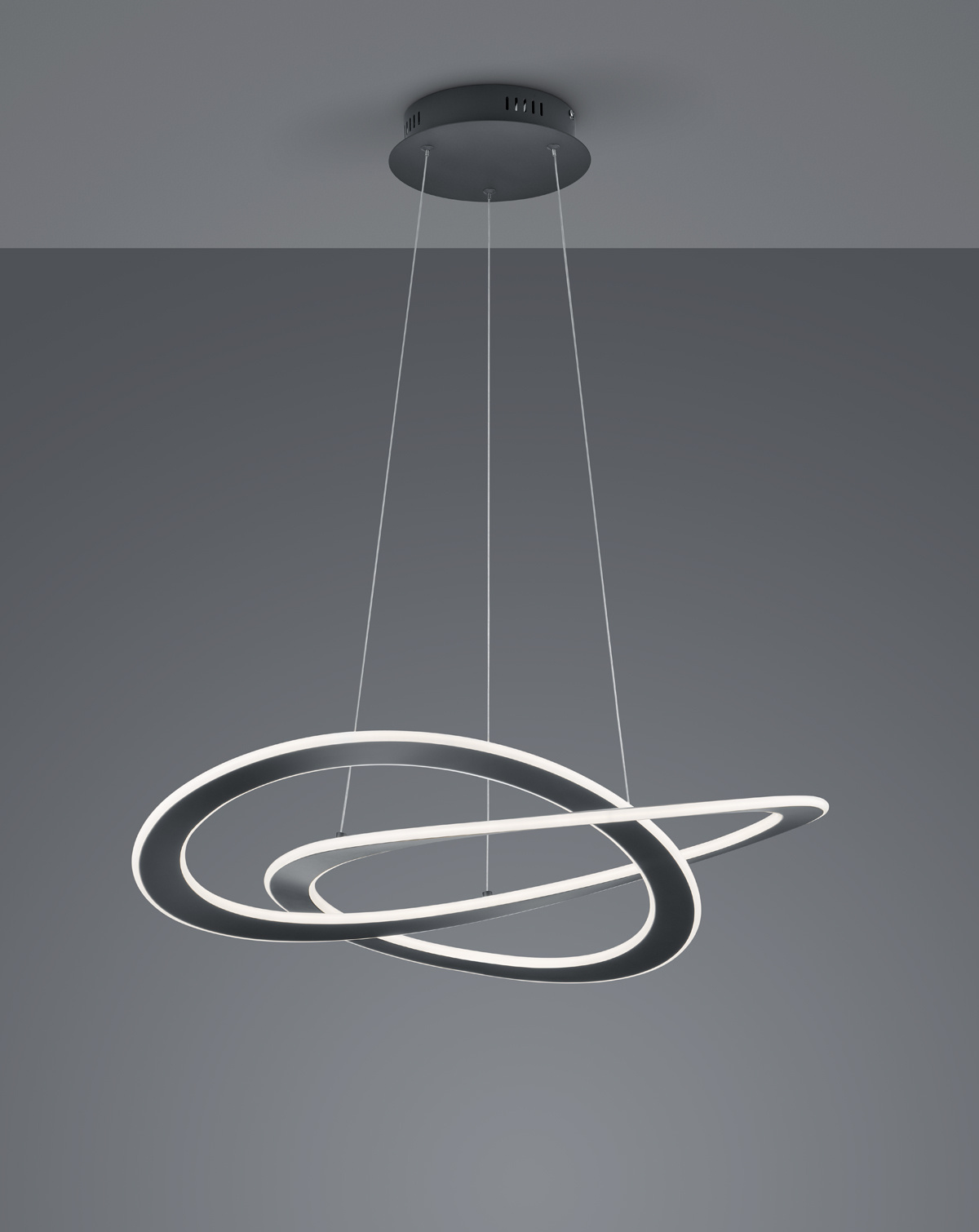 · Mit einem modernen und ausgefallenen Design schafft die Pendelleuchte OAKLAND einen effektvollen Blickfang in Ihrem Wohnraum. Pendelleuchten sind ideal, um bestimmte Bereiche optimal auszuleuchten. Mittig über dem Esstisch platziert, kommt das Pendel besonders zur Geltung und lädt zum Verweilen mit Freunden oder einem gemütlichen Essen ein. Des Weiteren besticht die Leuchte durch praktische Zusatzfunktionen. Über den integrierten SWITCH Dimmer kann per herkömmlichem Lichtschalter zwischen drei verschiedenen Helligkeitsstufen gewählt werden. Durch die Abstufung der Lichtintensität von 100% auf 50% und 25% kann die Leuchte damit verschiedene Lichtstimmungen bedienen. Die Leuchte hat eine Höhe von 150 cm und einen Durchmesser von 70 cm. Die in Anthrazit gehaltene Oberfläche verleiht der Pendelleuchte ein modernes Design, das sich in zahlreichen Einrichtungsstilen wiederfindet. Darüber hinaus verfügt die Leuchte über eine moderne LED Technologie, die sich durch eine hohe Lichtqualität und Energieeffizienz auszeichnet. Im Vergleich zu herkömmlichen Halogen Leuchtmitteln lassen sich bis zu 80% der Energiekosten sparen. Zusätzlich haben LED Lichtquellen eine lange Lebensdauer, produzieren weniger Wärme und schonen die Umwelt.