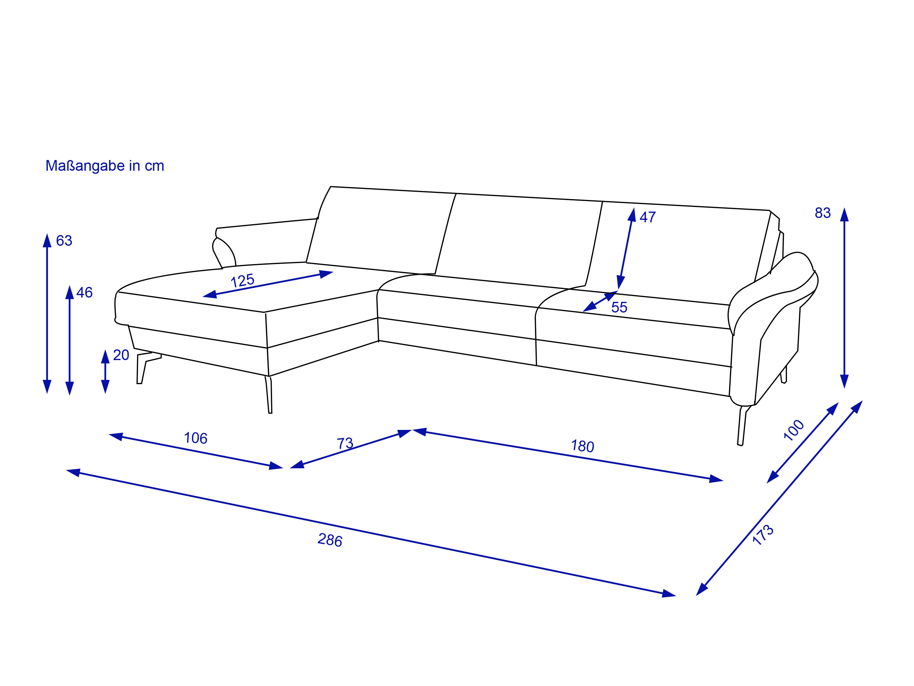 · Sitzhöhe-/tiefe ca. 46/55cm