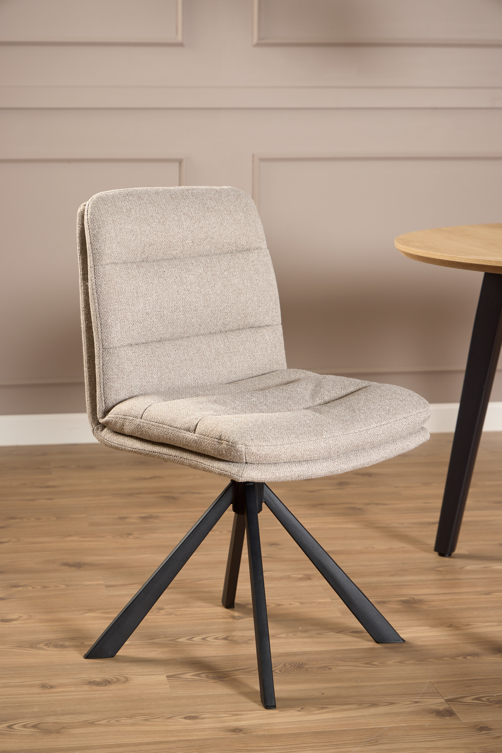 Dieser Polsterstuhl verbindet ein hohes Maß an Komfort mit Stabilität. Mit dem Stuhl ergänzen Sie Ihr Wohnbereich ideal und kommen Ihrer gewünschten Wohlfühl-Atmosphäre deutlich näher. Der Stuhl ist beigefarben. Kombinieren Sie ihn dank seiner farblichen Gestaltung mit unterschiedlichsten weiteren Möbeln und freuen Sie sich auf hervorragende Ergebnisse. Erschaffen Sie mit dem Sitzmöbel eine komfortable Stimmung und bringen Sie attraktives Design in Ihr Interieur. Die Sitzgelegenheit hat eine Gesamthöhe von 85 cm und ein Tiefenmaß von 57 cm. Dieser Stuhl ist die optimale Wahl für Ihre Bedürfnisse.