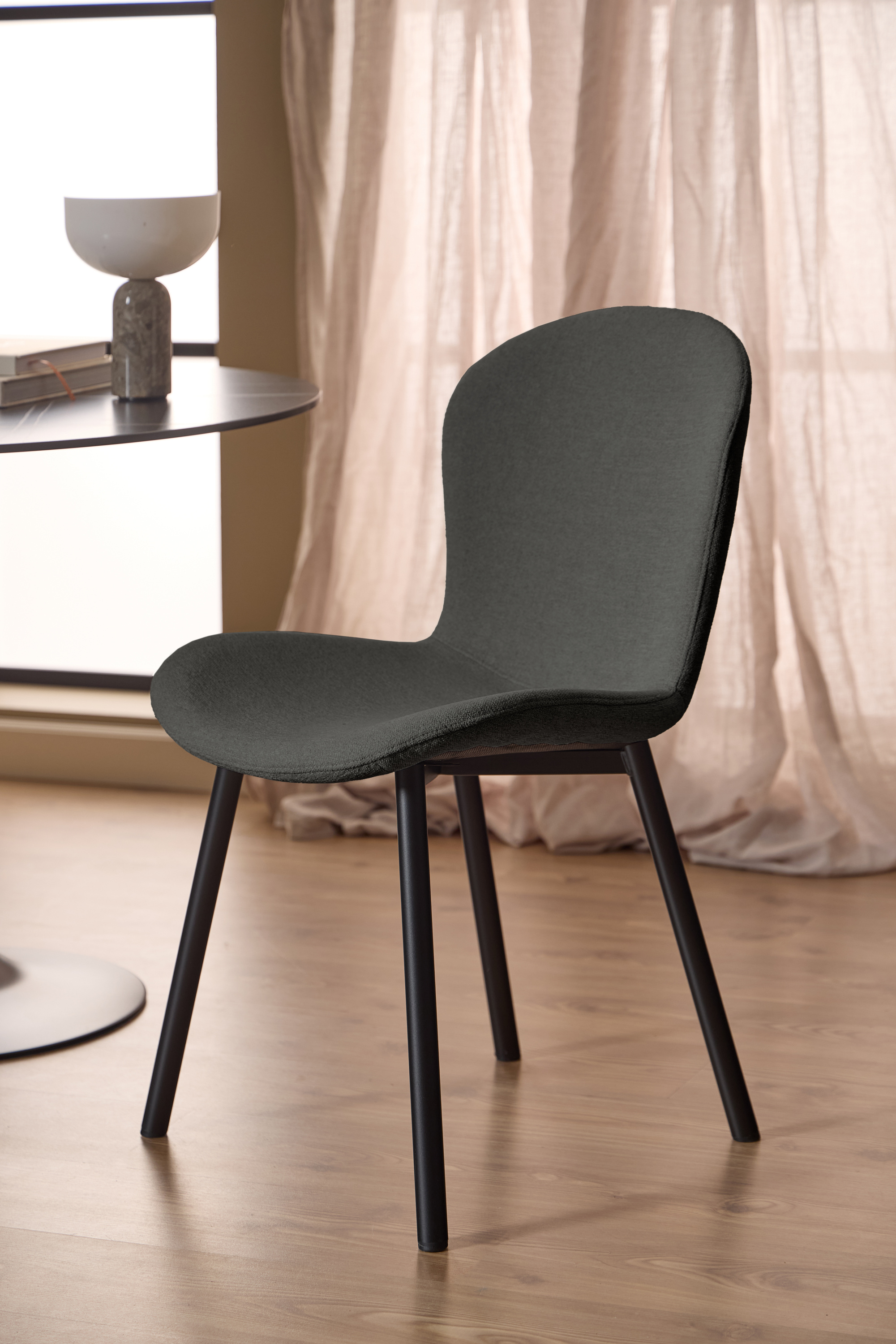 Dieser Polsterstuhl begeistert durch die gekonnte Verbindung aus Funktion und Stil. Der graue Stuhl bietet eine ebenso komfortable wie ästhetische Sitzgelegenheit für Ihr Interieur und lässt geradezu keine Wünsche offen. Er überzeugt nicht nur durch seine Farbgebung, sondern harmoniert durch diese auch mit verschiedensten Einrichtungsideen. Das Möbelstück harmoniert dank des attraktiven Designs ausgezeichnet mit Ihrem Zuhause. Es weist eine Gesamtbreite von 50 cm, ein Höhenmaß von 86 cm sowie ein Tiefenmaß von 58 cm auf. Dieser Stuhl rundet ein behagliches Ambiente geschmackvoll ab.