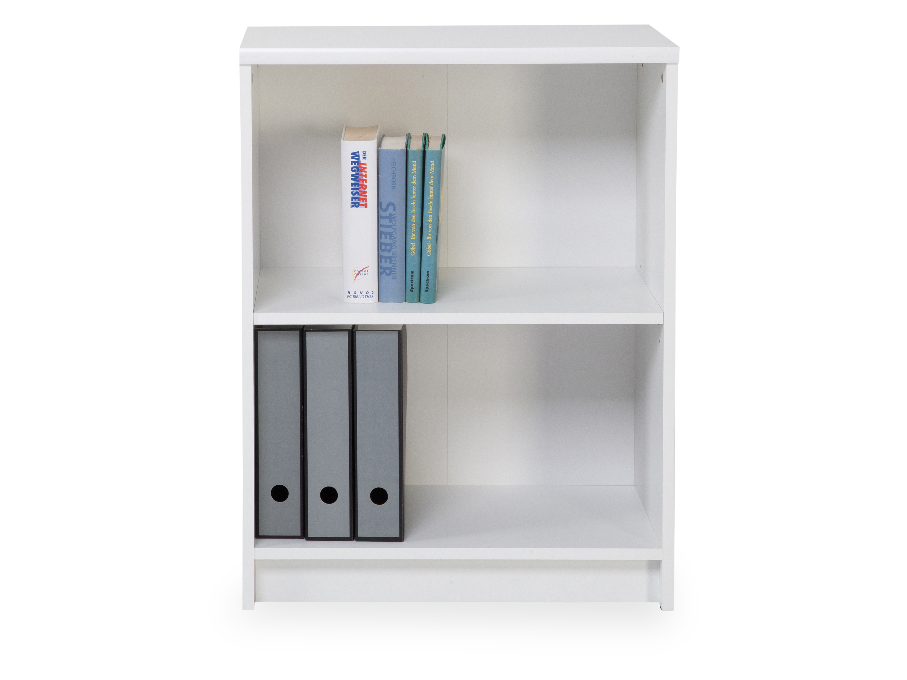 LILLY REGALE, · Korpus: Dekor weiß · mit zwei offenen Fächern und einem verstellbaren Einlegeboden mehr
