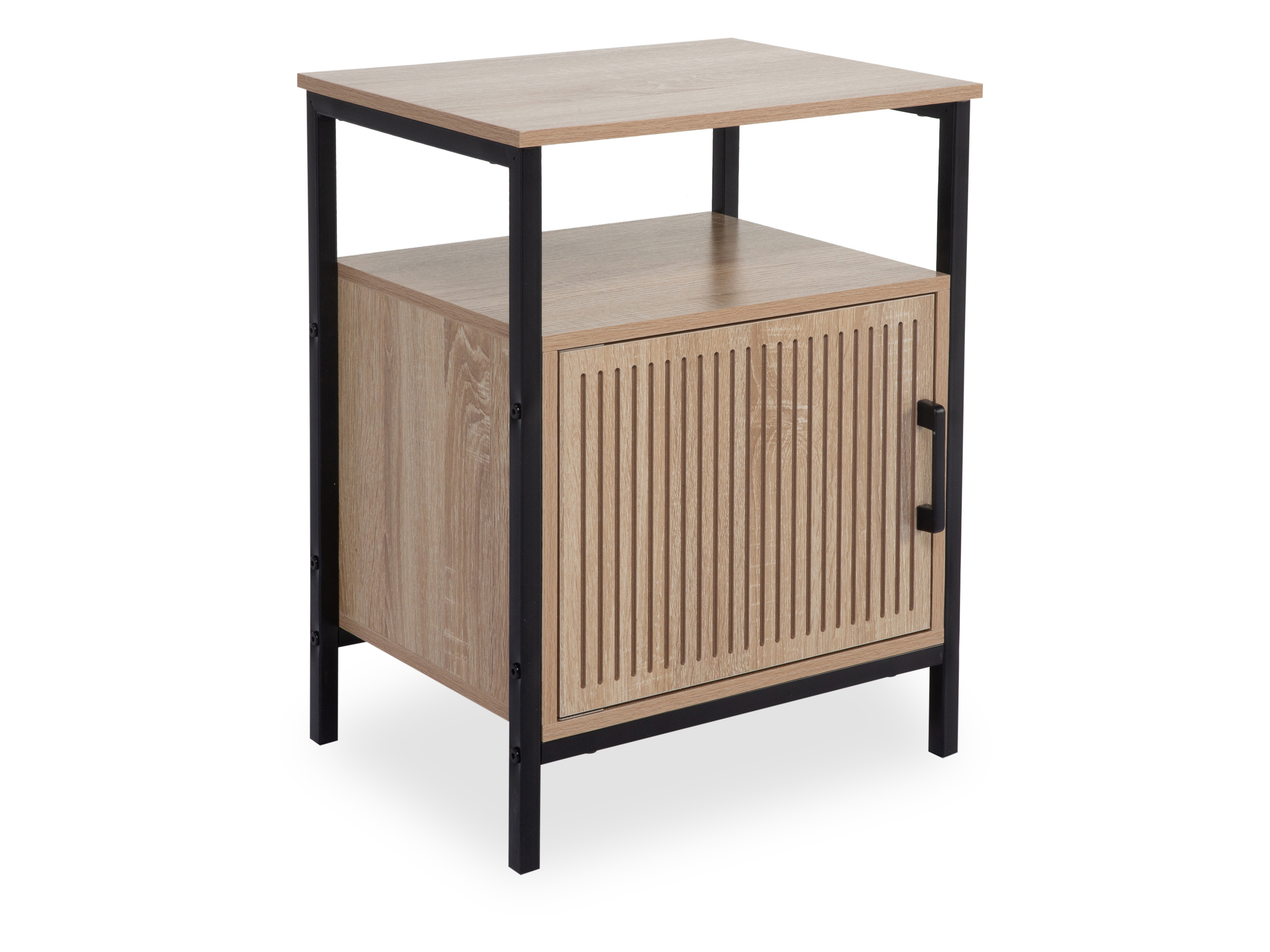 · mit einer Holztür und einem offenen Fach