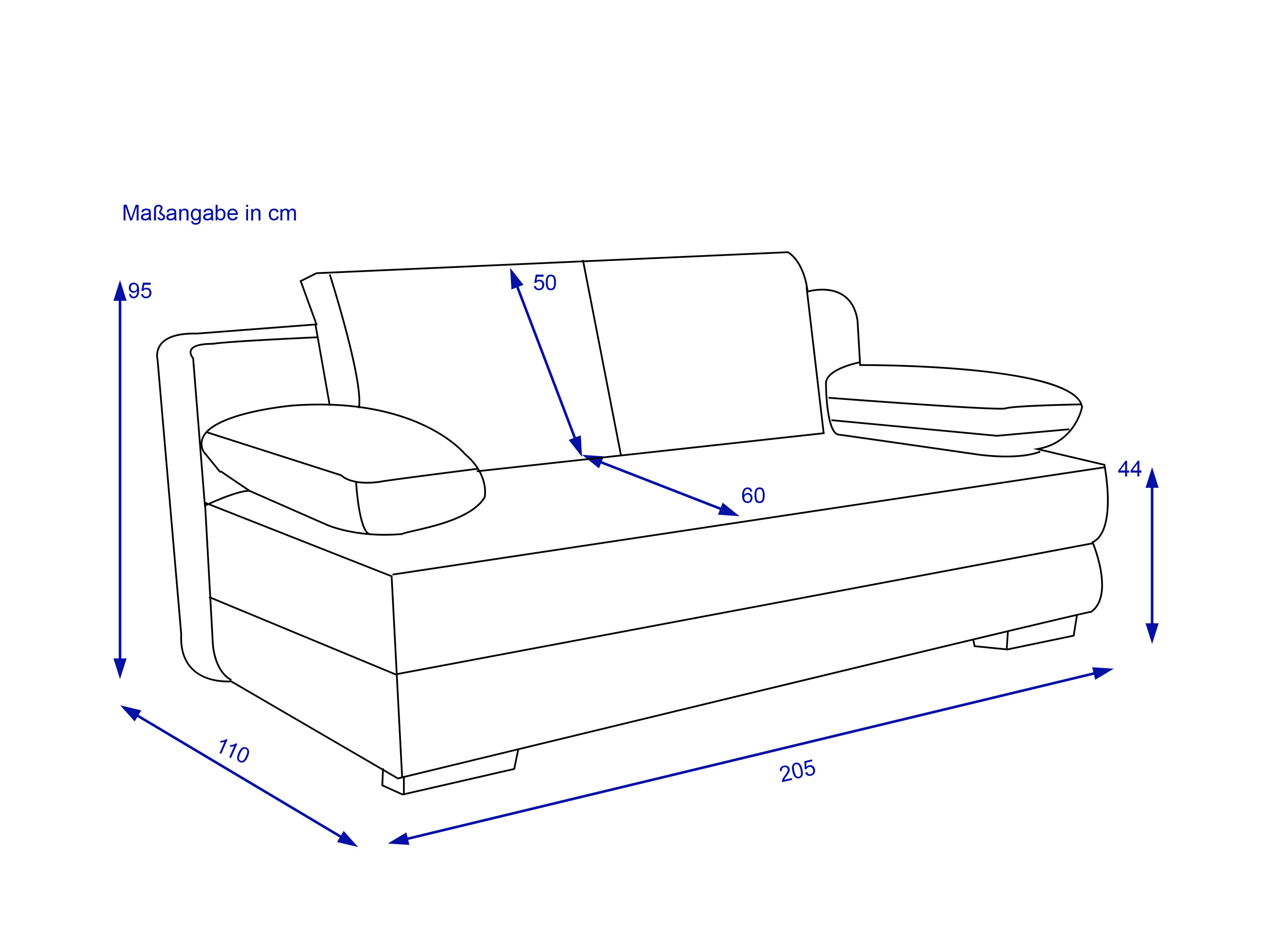 | Abmessung: | BHT 203x90x109 cm |