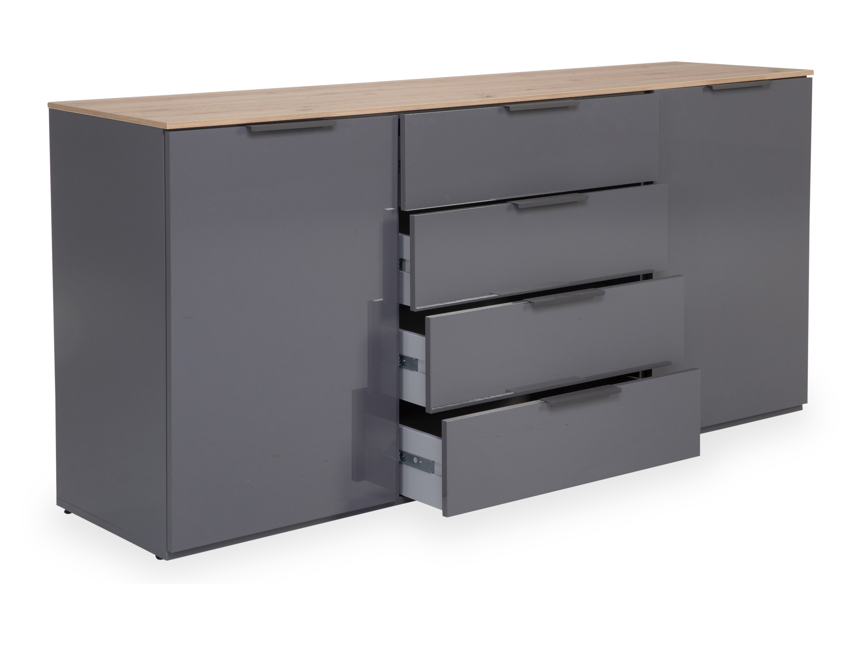 · Korpus: Hochglanz grau · Front: Hochglanz grau · Oberplatte: Artisan Eiche · Griffe Metall... mehr