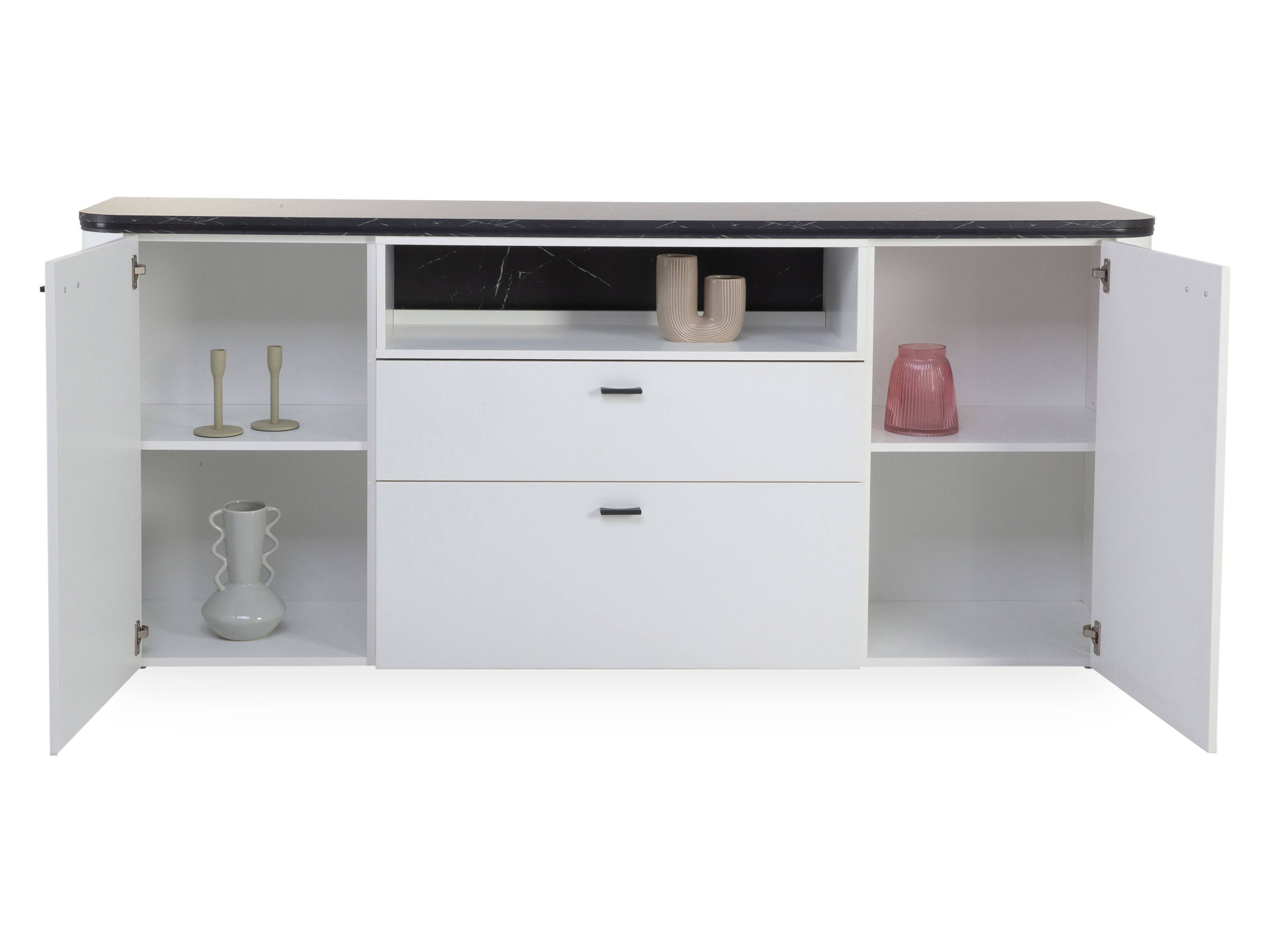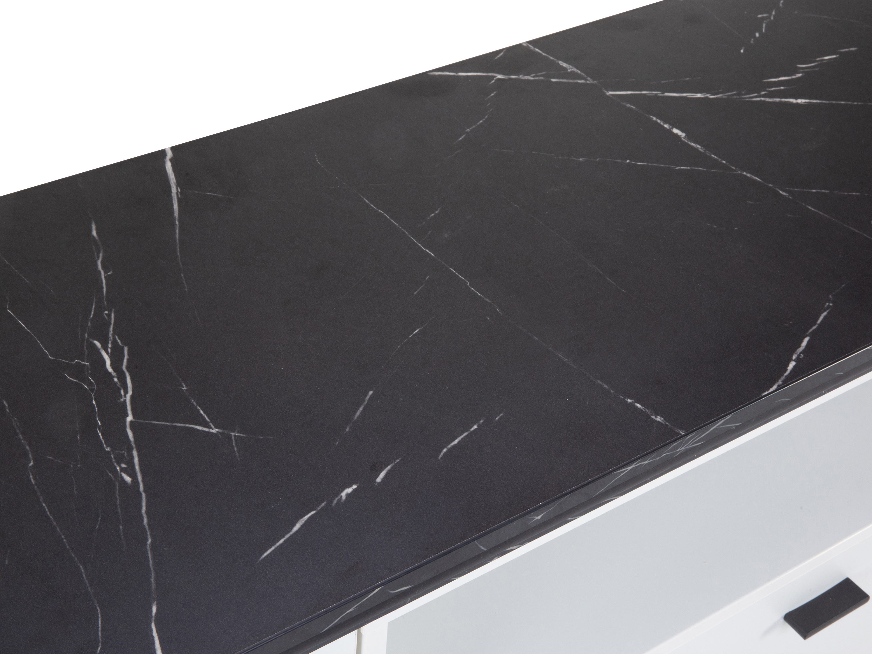 · Korpus: weiß matt Dekor · Front: weiß matt Dekor · Absetzung: Marmor Dekor · Griff: schwarz... mehr
