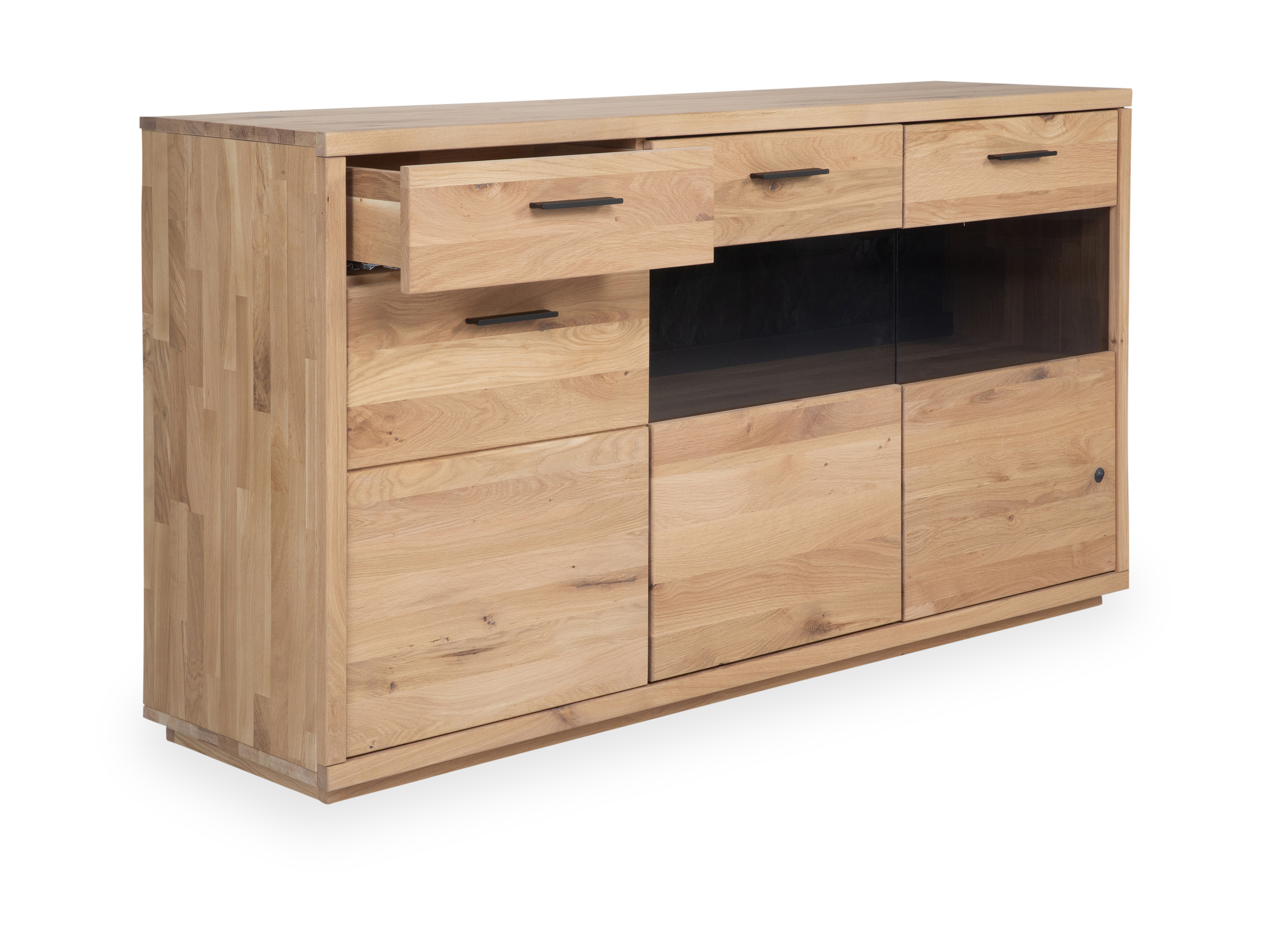 · Korpus: Wildeiche Bianco massiv keilverzinkt, Oberböden teilweise durchgehende Lamelle