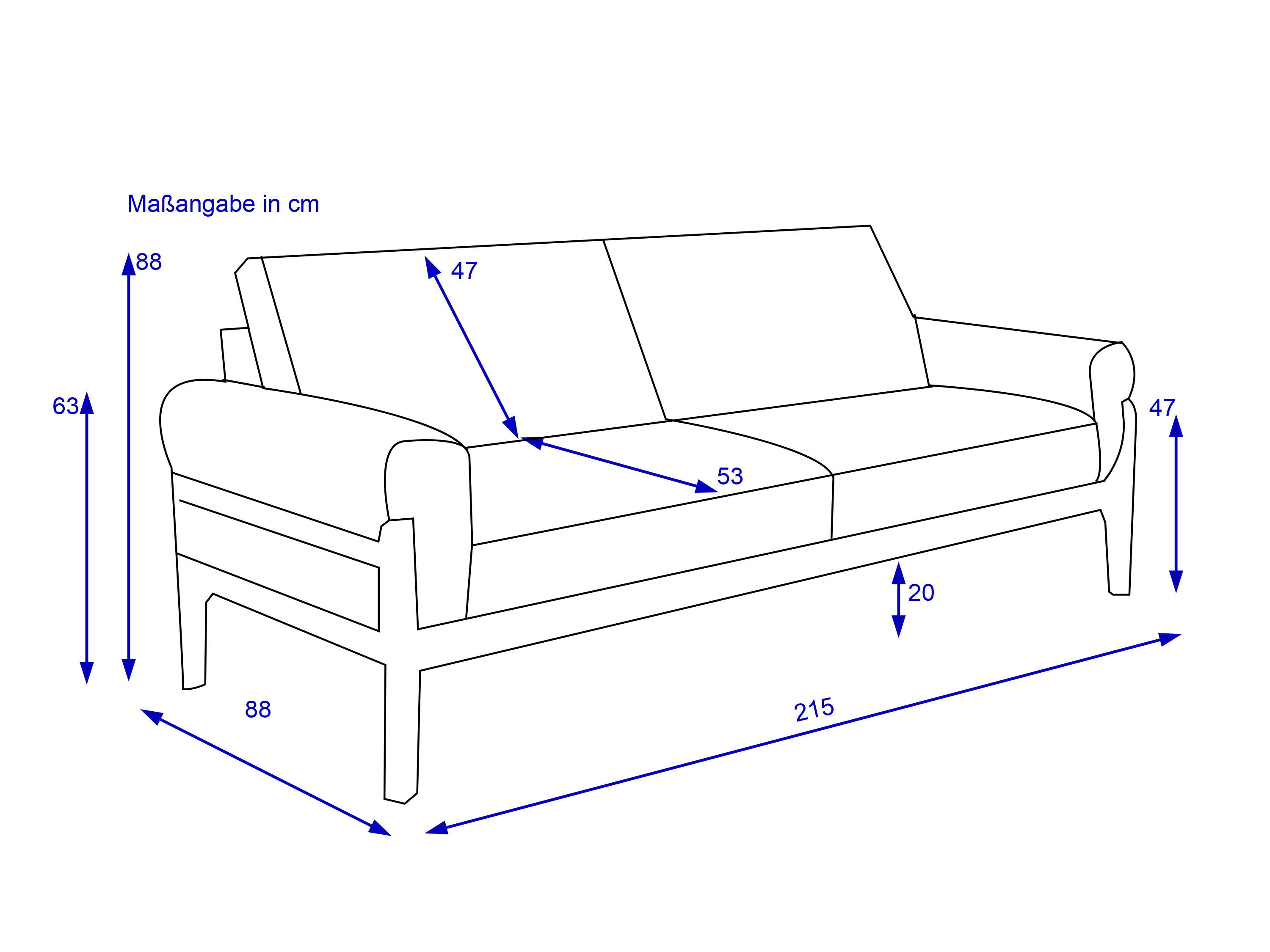 Abmessung: BHT 217x85x90 cm