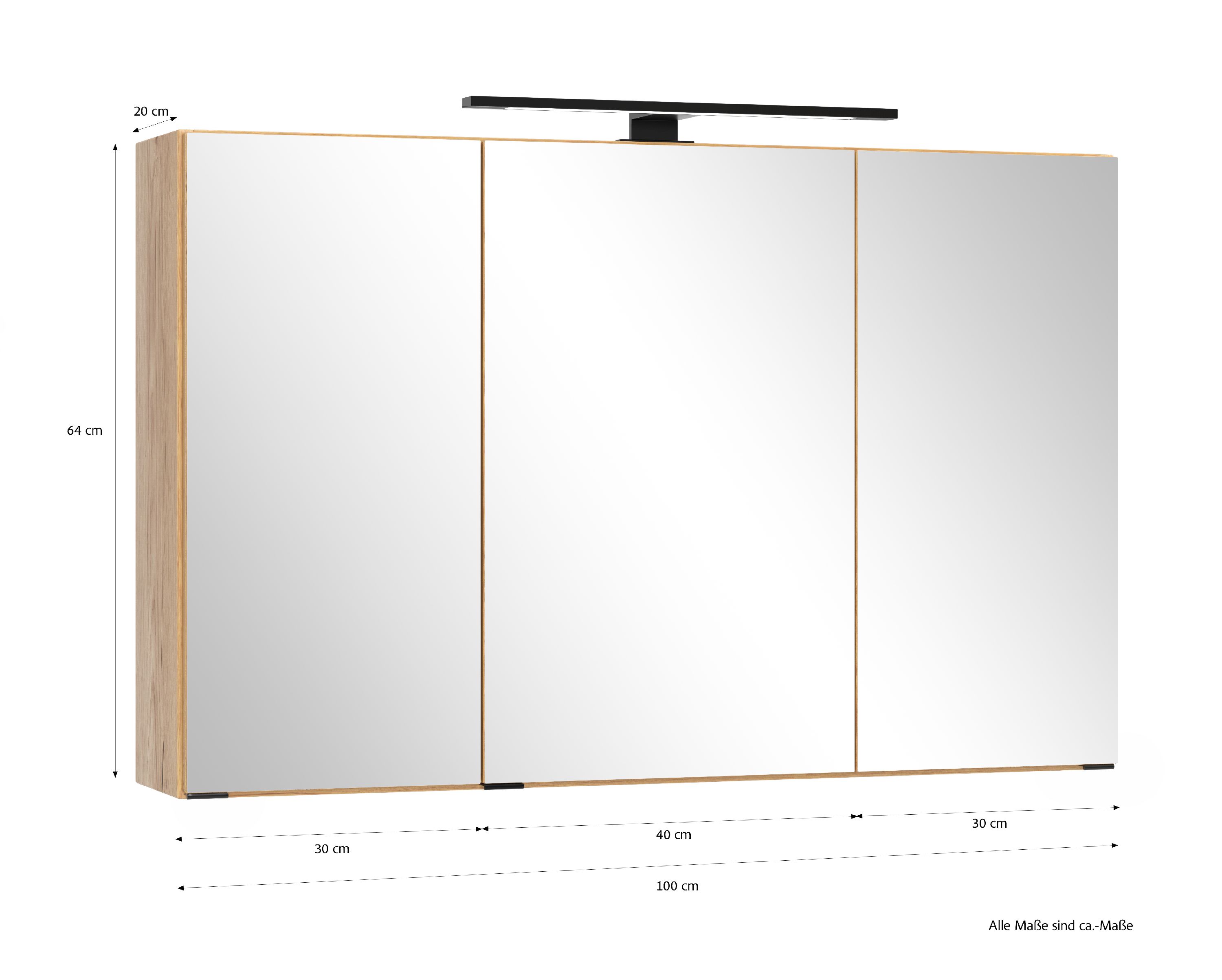 · Korpus: MDF foliert in Dekor Wildeiche · BHT: ca. 100x64x20 cm · drei Türen mit Spiegel,... mehr