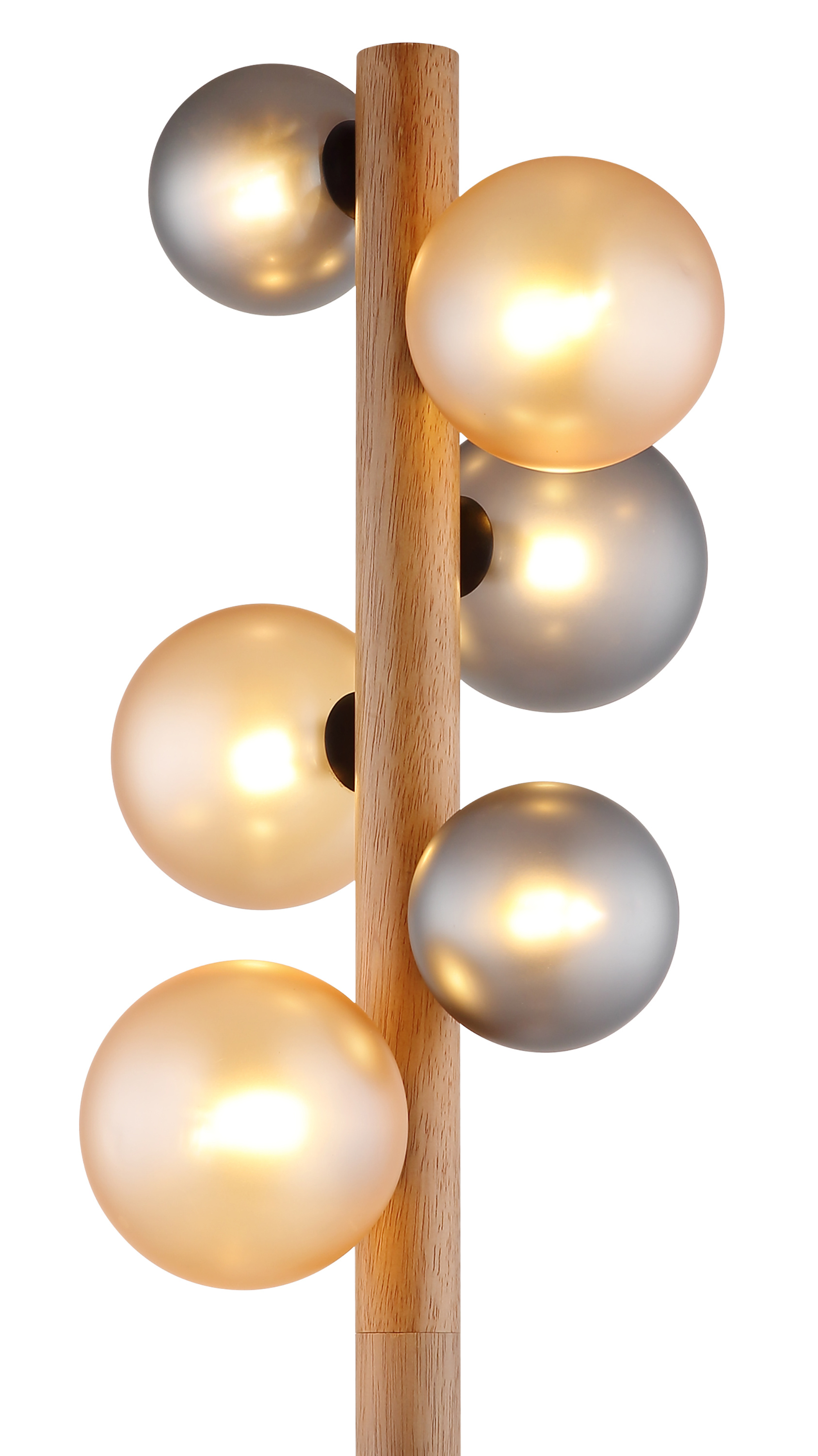 · schwarz matt · Metall · Holz dunkelbraun · Glaskugeln amber · rauchfarben · satiniert ·... mehr
