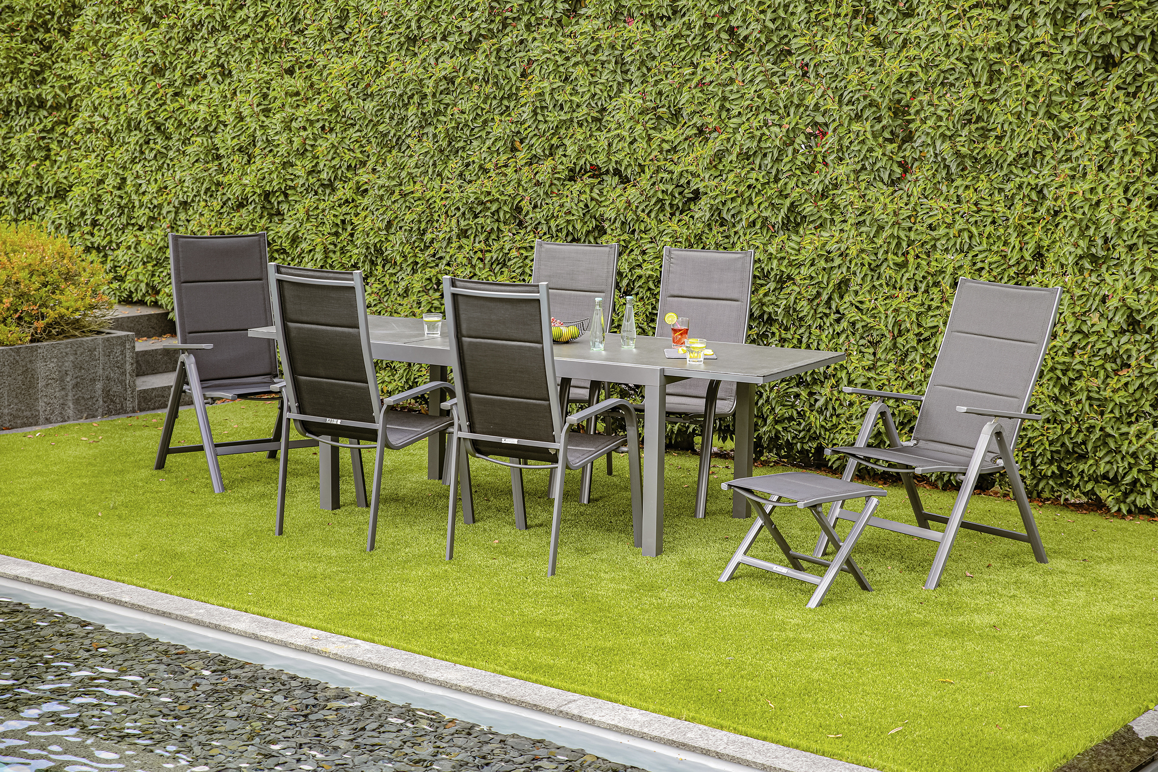 · Flexibler Sitzkomfort - 7-fach verstellbare Rückenlehnen der Stühle ermöglichen individuelle Sitzpositionen - für entspannte Stunden zu jeder Gelegenheit.