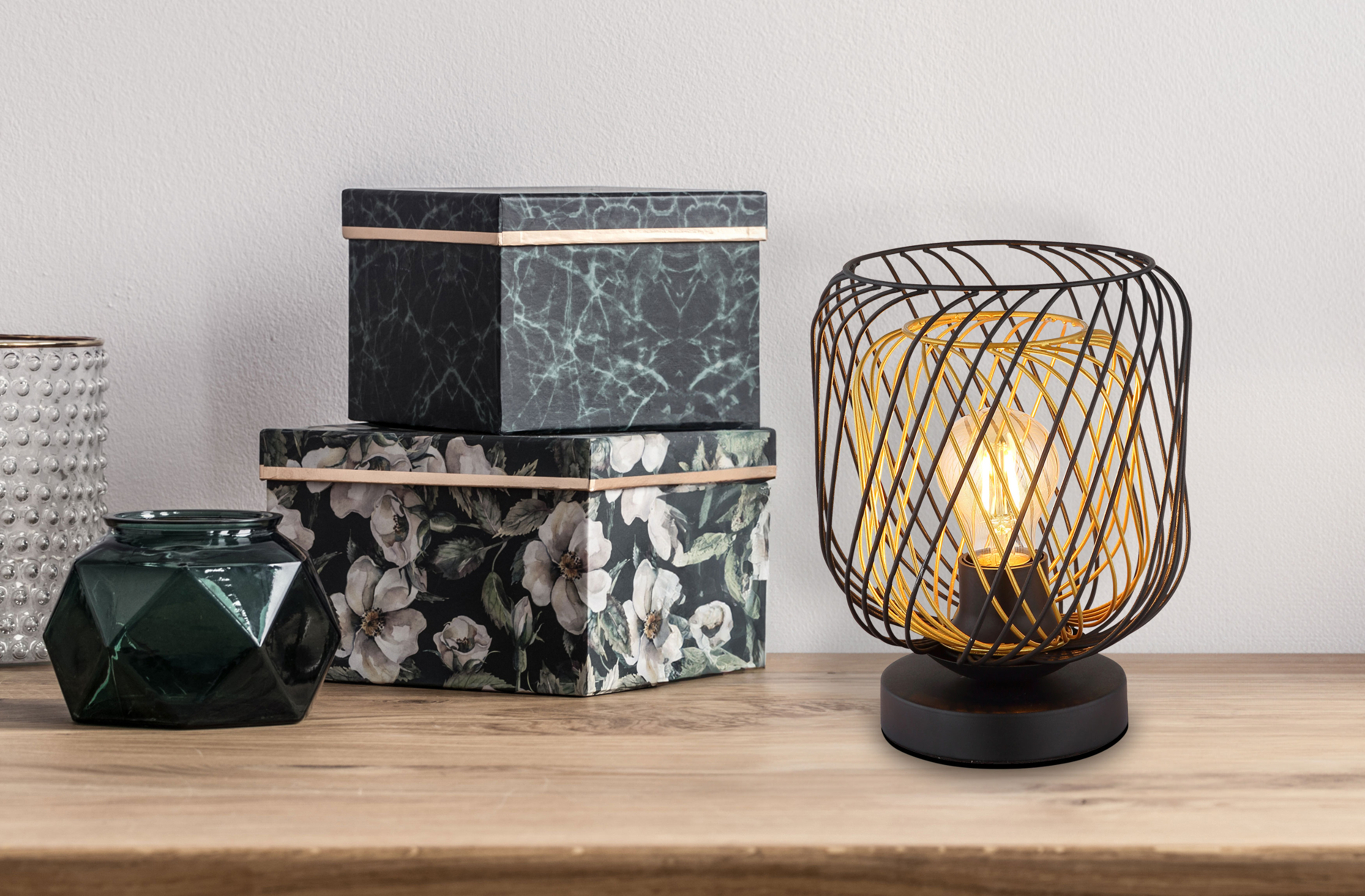 Diese Tischlampe wird Sie sicherlich überzeugen. Sämtliche Qualitäten und Besonderheiten, die die Marke GLOBO Lighting definieren, kommen in der Lampe zusammen. Die Tischleuchte ergänzt Ihr persönliches Einrichtungskonzept dank des tollen Designs und kann auch im ausgeschalteten Zustand als Dekoration dienen. Sie wurde aus Metall angefertigt. Die Lampe ist an die Aufnahme von Leuchtmitteln mit einem E27-Sockel angepasst. Die wunderschöne Tischleuchte hat ein zeitloses Design und schenkt Ihrer Wohnung eine tolle Atmosphäre. Die Tischleuchte ist insgesamt 24,5 cm hoch. Ihr Interieur wird aufgrund dieser Lampe gekonnt ergänzt. Die Leuchte komplettiert Ihr Interieur.