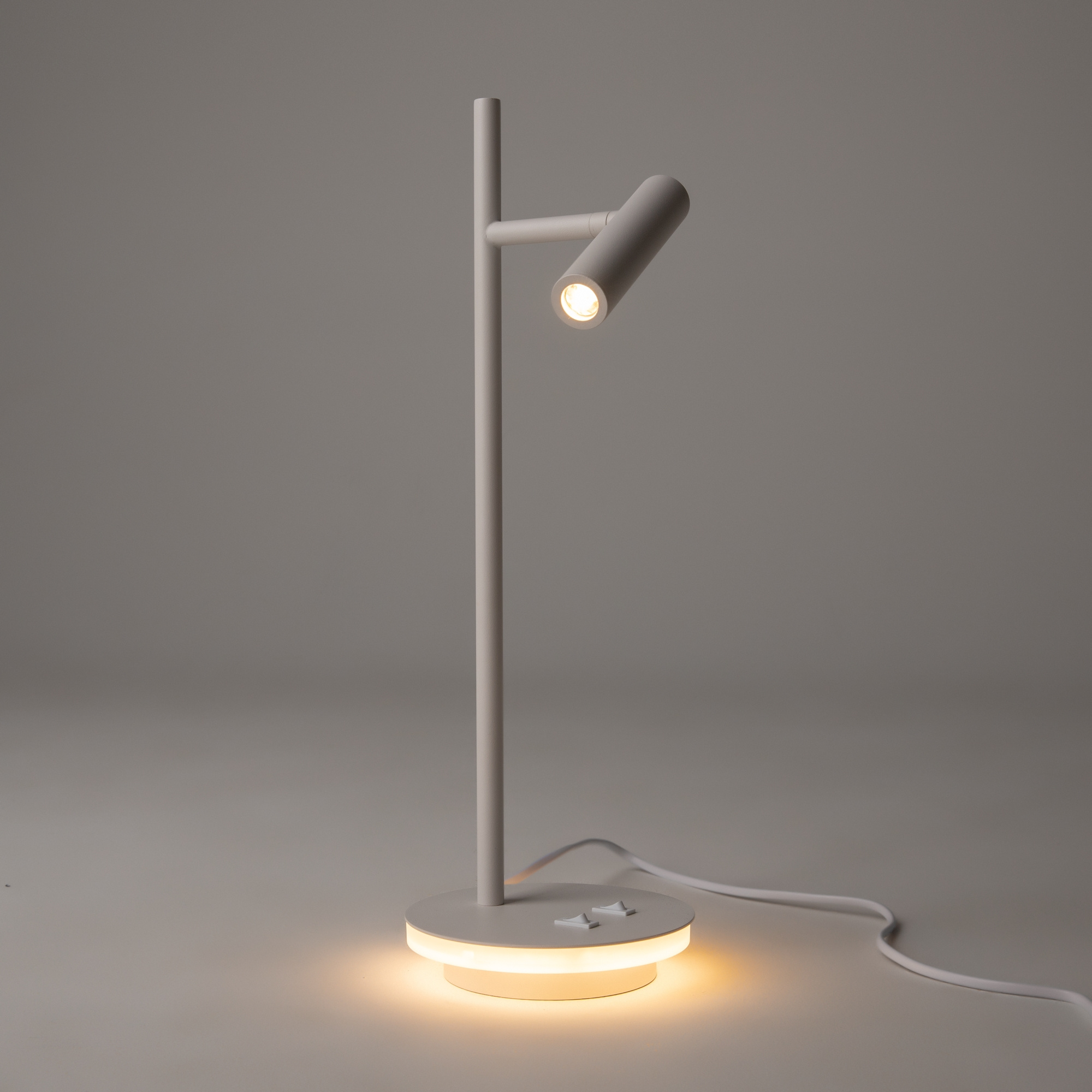 · Rahmenmaterial: Metall, Farbton: Schwarz, Weiß. Dekorative Beleuchtung im Sockel. Drehbarer zylinderförmiger Lampenschirm zum Einstellen der Lichtrichtung. LED-Lichtquelle.