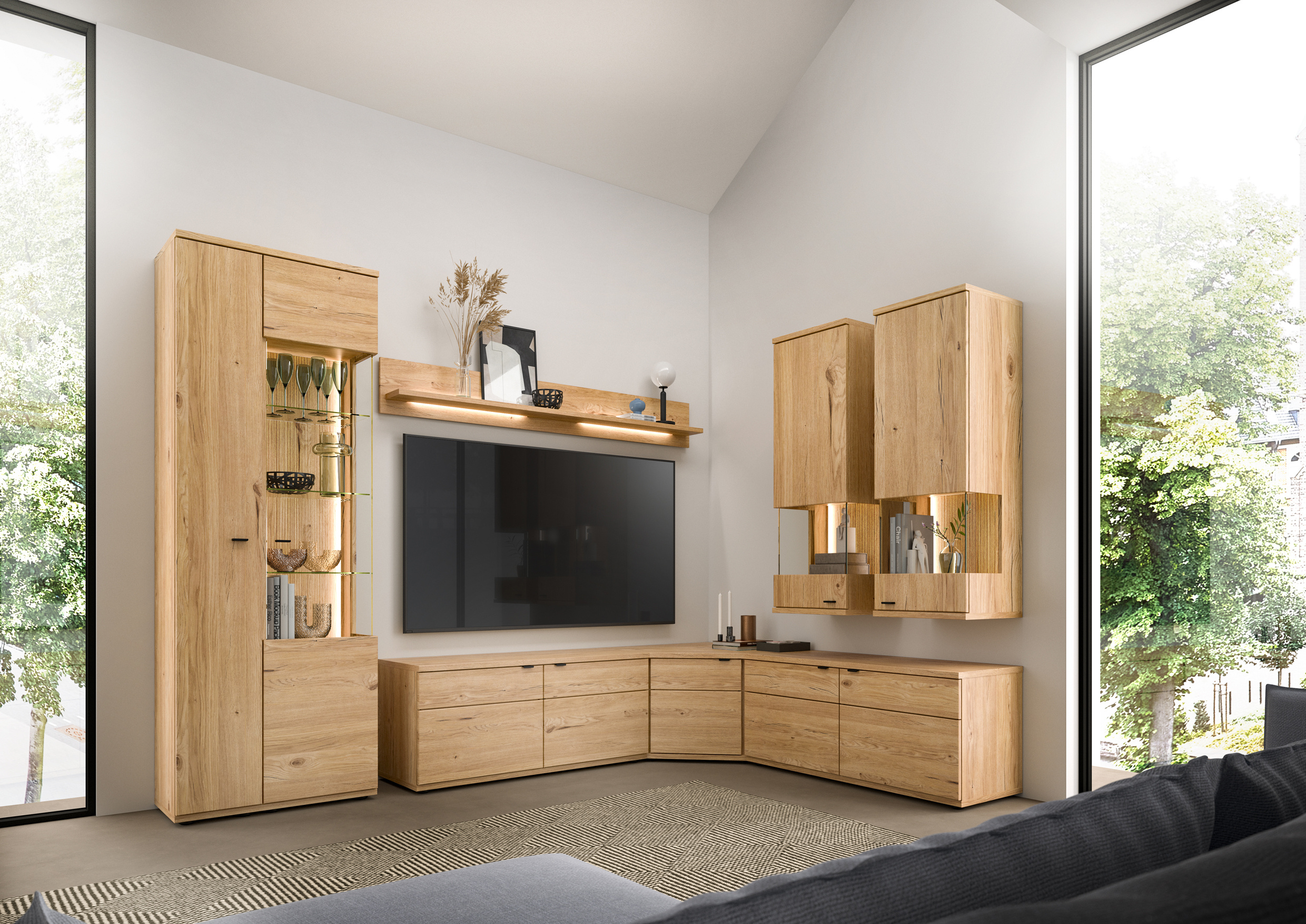 · seperat erhältlich: geschroppte Rückwand und LED-Beleuchtung