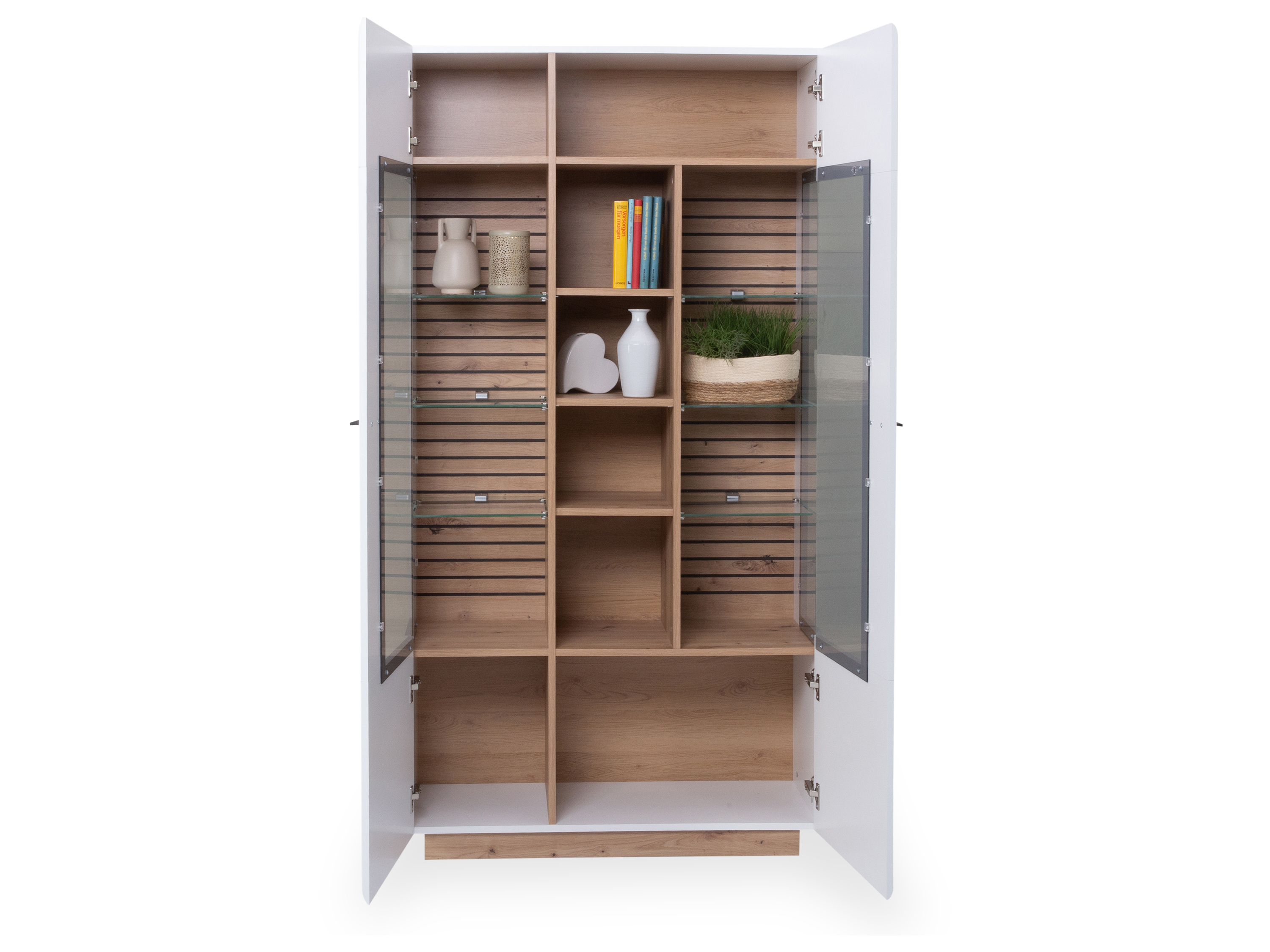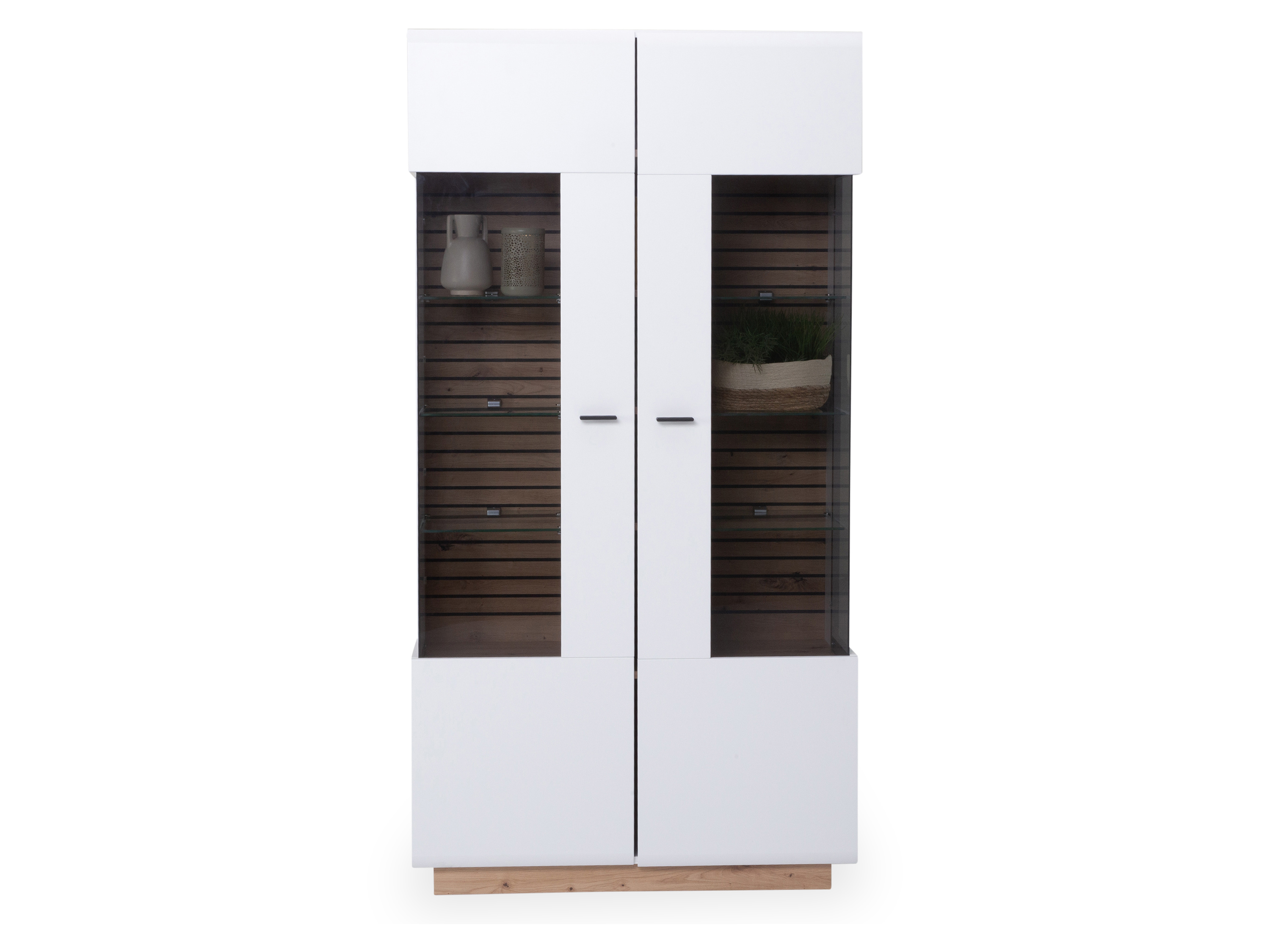 · Vitrine mit zwei Holz-/Glastüren, Anschlag rechts/links · Front: weiß matt mit Absetzung in... mehr