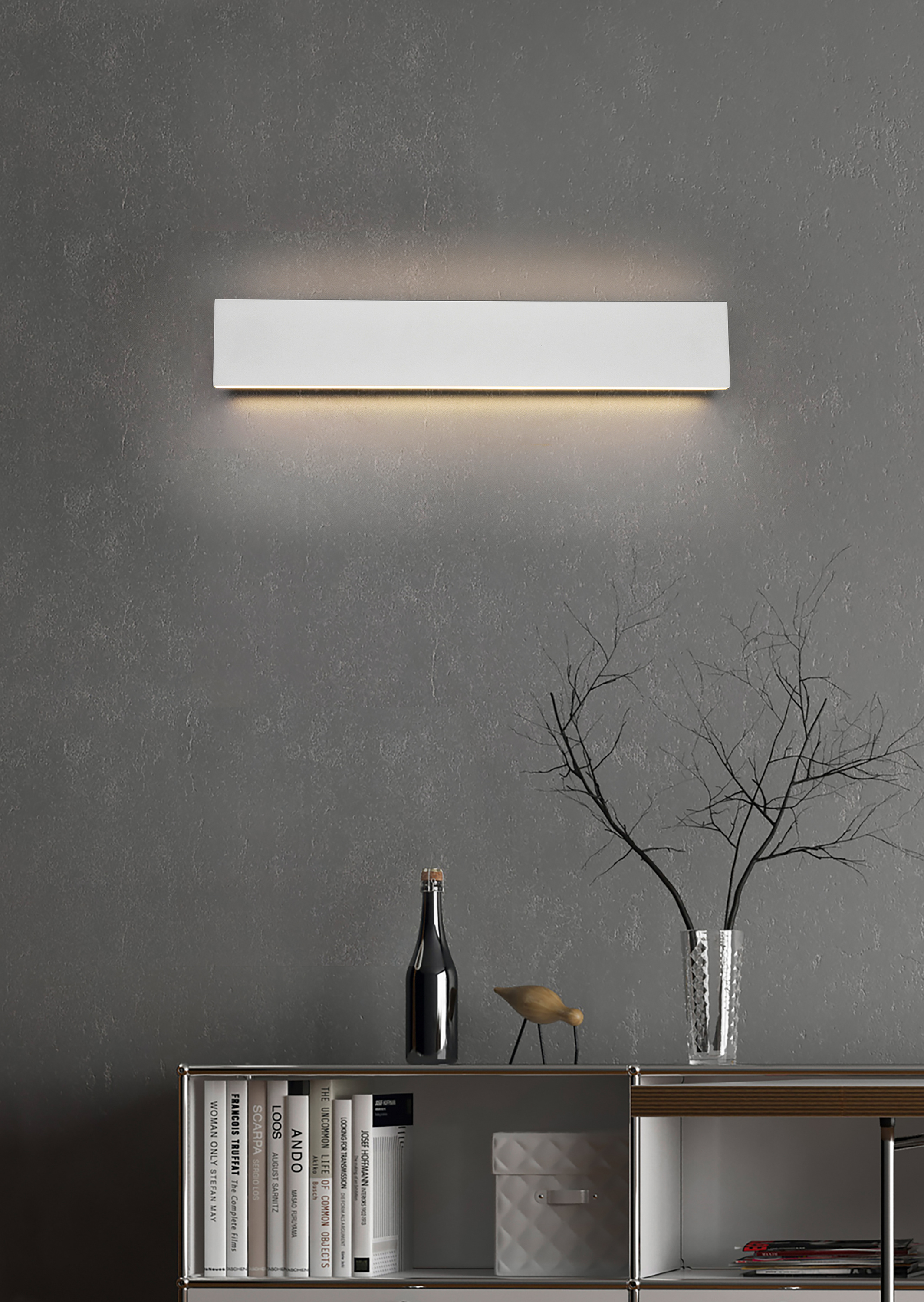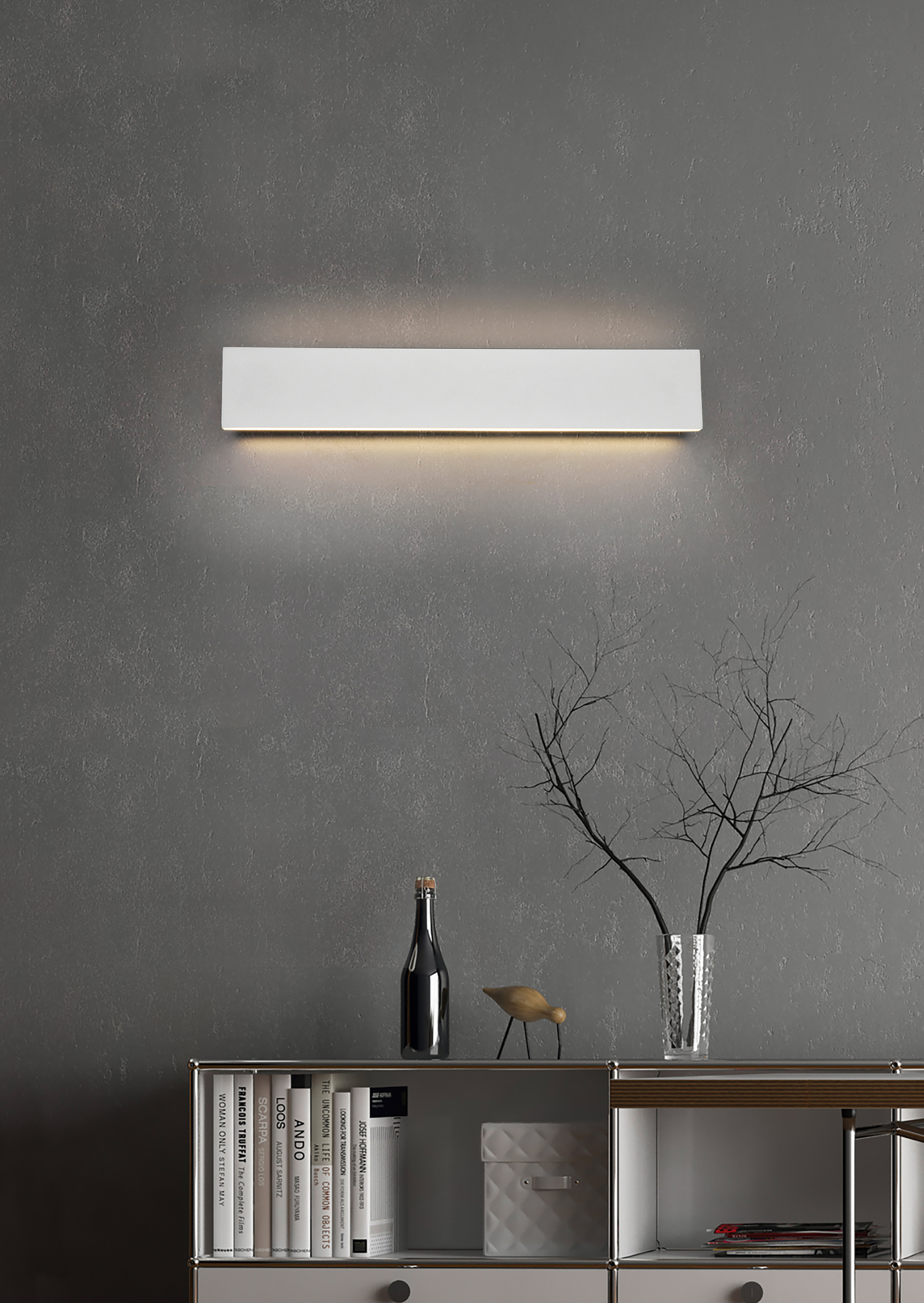 · Die Wandleuchte CONCHA setzt Wohnbereich wunderbar in Szene und erzeugt eine stimmungsvolle Atmosphäre. Durch die Ausstrahlung des Lichts nach oben und unten entsteht ein besonderer Lichteffekt, sodass die CONCHA als Akzent- oder Dekorationsbeleuchtung eingesetzt werden kann. Zusätzlich verfügt die Leuchte über einen SWITCH Dimmer und ermöglicht damit die Abstufungen der Helligkeit von 100% auf 50% und 25%. Die Leuchte hat eine Breite von 47 cm und eine Höhe von 8 cm. Sie ist Weiß matt designt und passt hervorragend in moderne und klassische Einrichtungskonzepte. Darüber hinaus verfügt die Leuchte über eine moderne LED Technologie, die sich durch eine hohe Lichtqualität und Energieeffizienz auszeichnet. Im Vergleich zu herkömmlichen Halogen Leuchtmitteln lassen sich bis zu 80% der Energiekosten sparen. Zusätzlich haben LED Lichtquellen eine lange Lebensdauer, produzieren weniger Wärme und schonen die Umwelt.