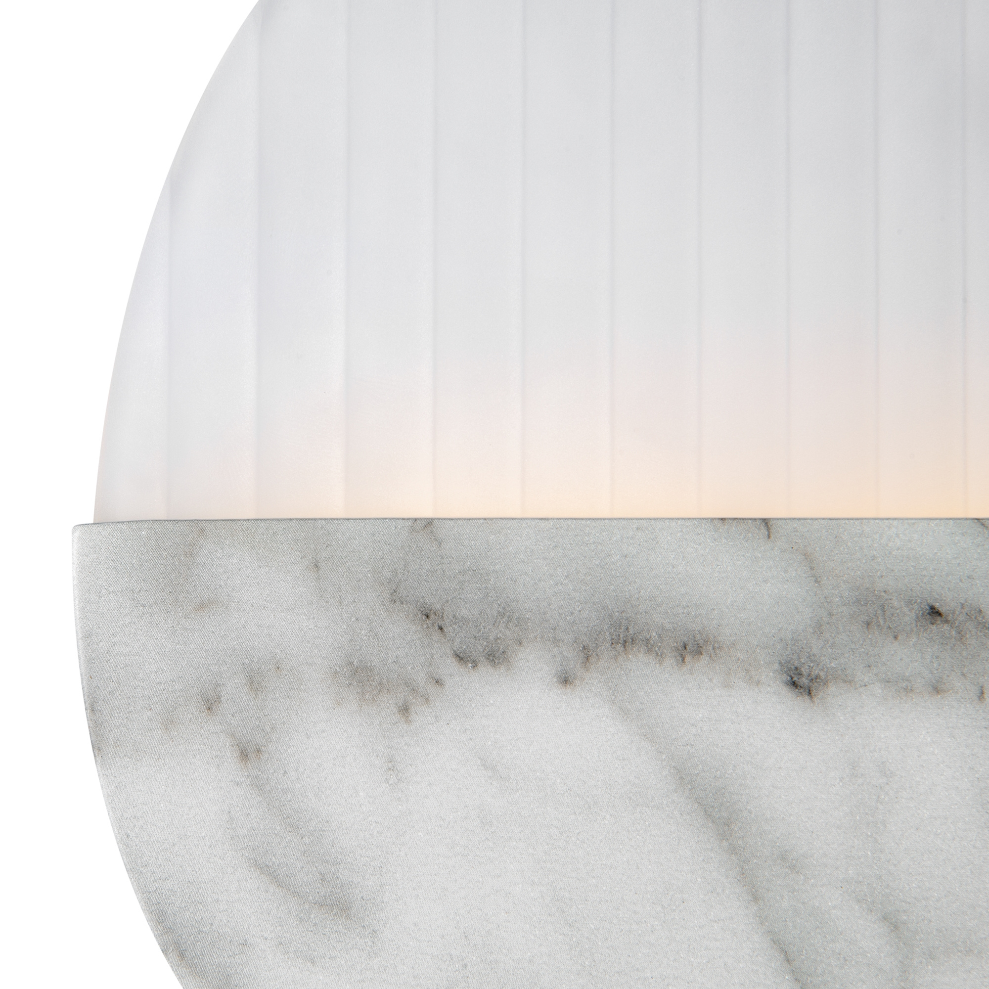 · Gebürstete Metallbeschläge, Farbtöne: Messing, Marmor. Zwei Arten von Diffusoren: geriffeltes Glas und weißes mattes Acryl. Lichtquelle: Lichtband, Farbtemperatur 3000K.